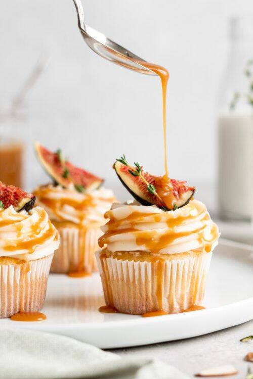 Bourbon Caramel Almond Cupcakes