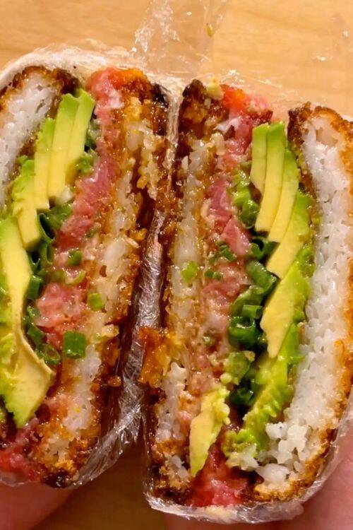 Crispy Tuna Avocado Rice Burger