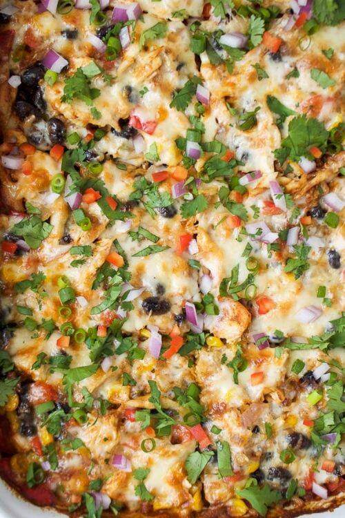 The ingredients include black beans, oregano, jalapeno, rice and cooked chicken.