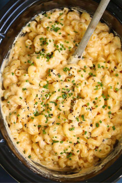 The ingredients include cream cheese, shredded cheddar cheese, elbow macaroni, onion powder and paprika.