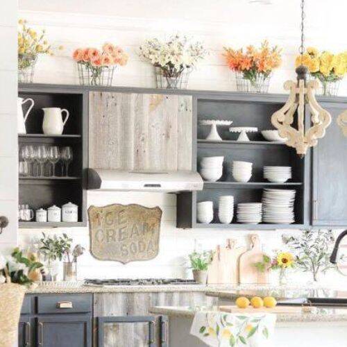 It is a beautiful Spring decor above the kitchen cabinet. This is one of the most spectacular Spring kitchen decor ideas.