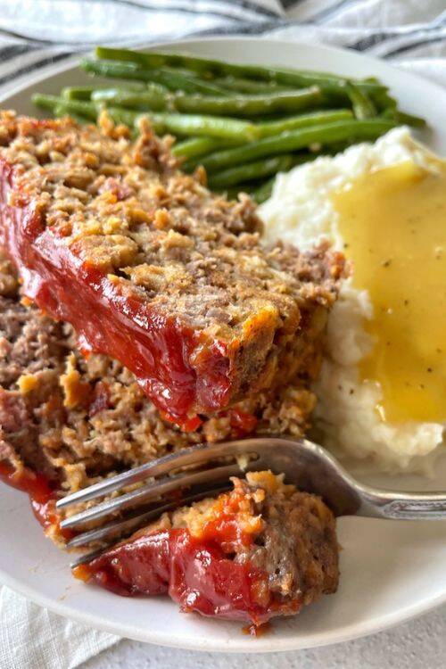 It should be tender on the inside so it’s important to not overmix the meatloaf.