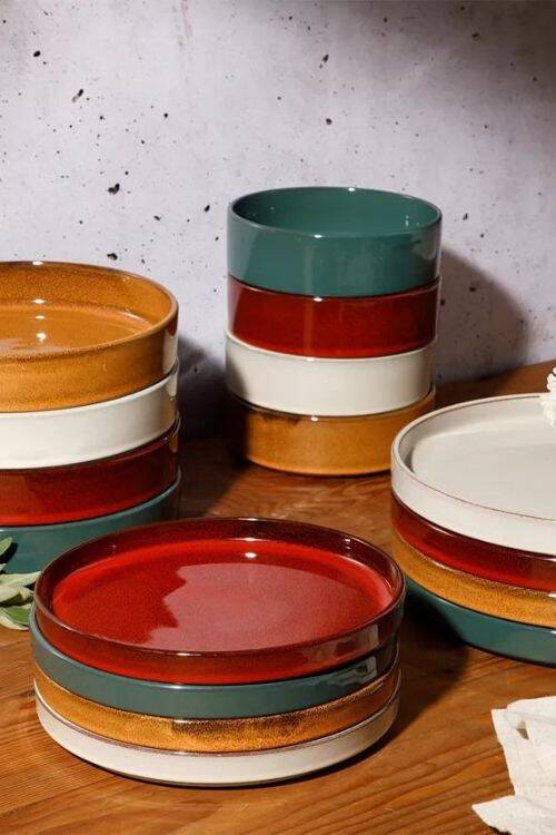 These mix-and-match dinner plates look interesting are made of top-quality stoneware.