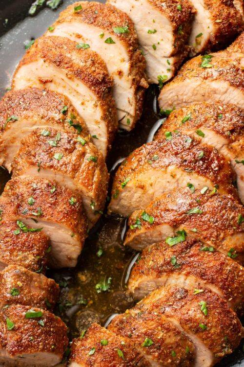 The ingredients include pork tenderloin, onion powder, garlic powder, smoked paprika and butter.