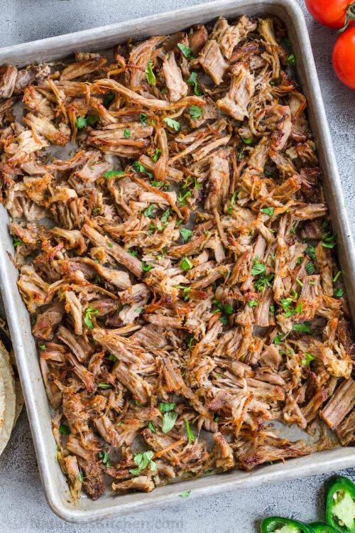 The ingredients include boneless pork shoulder, paprika, cumin, barbecue sauce and red pepper.