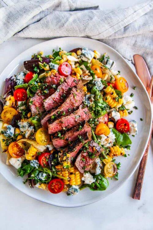 Balsamic Steak Gorgonzola Salad With Grilled Corn