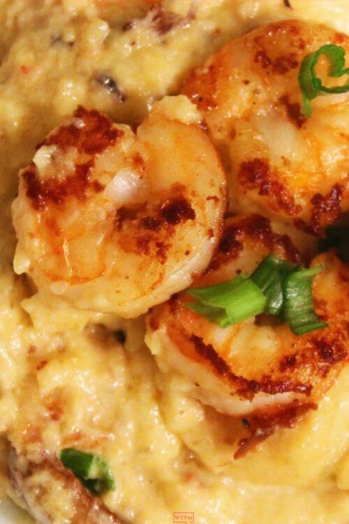 The ingredients include jumbo shrimp, salt, butter, stone-ground grits, bacon, cheddar cheese and whole milk.