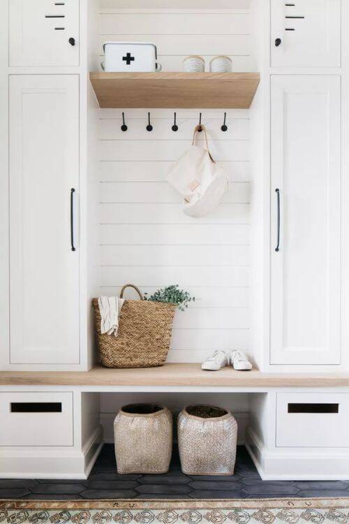 Just a little bit of texture on the walls can make a lot of difference. This entryway only has a bench, but the wall paneling takes it to the next level.