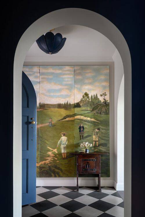 It is one of the most impressive entryway ideas. The oil paintings bring a dash of color to the entryway. The painting on the wall looks impressive too.