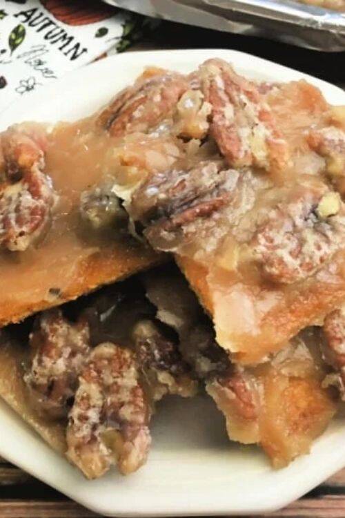 The ingredients include apple pie spice, butter, apple, crescent rolls and pecans.
